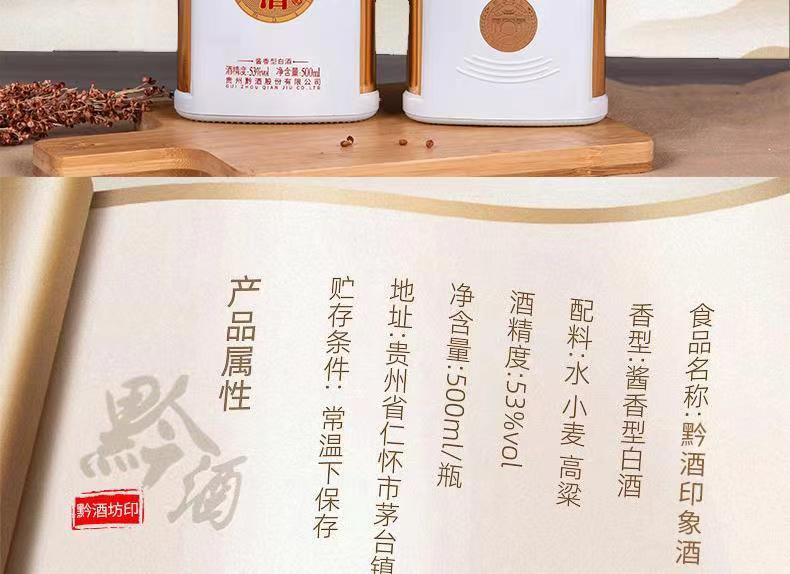 黔酒印象 黔酒坊印 53度 酱香型白酒 纯粮酿造 500ML*4瓶 整箱