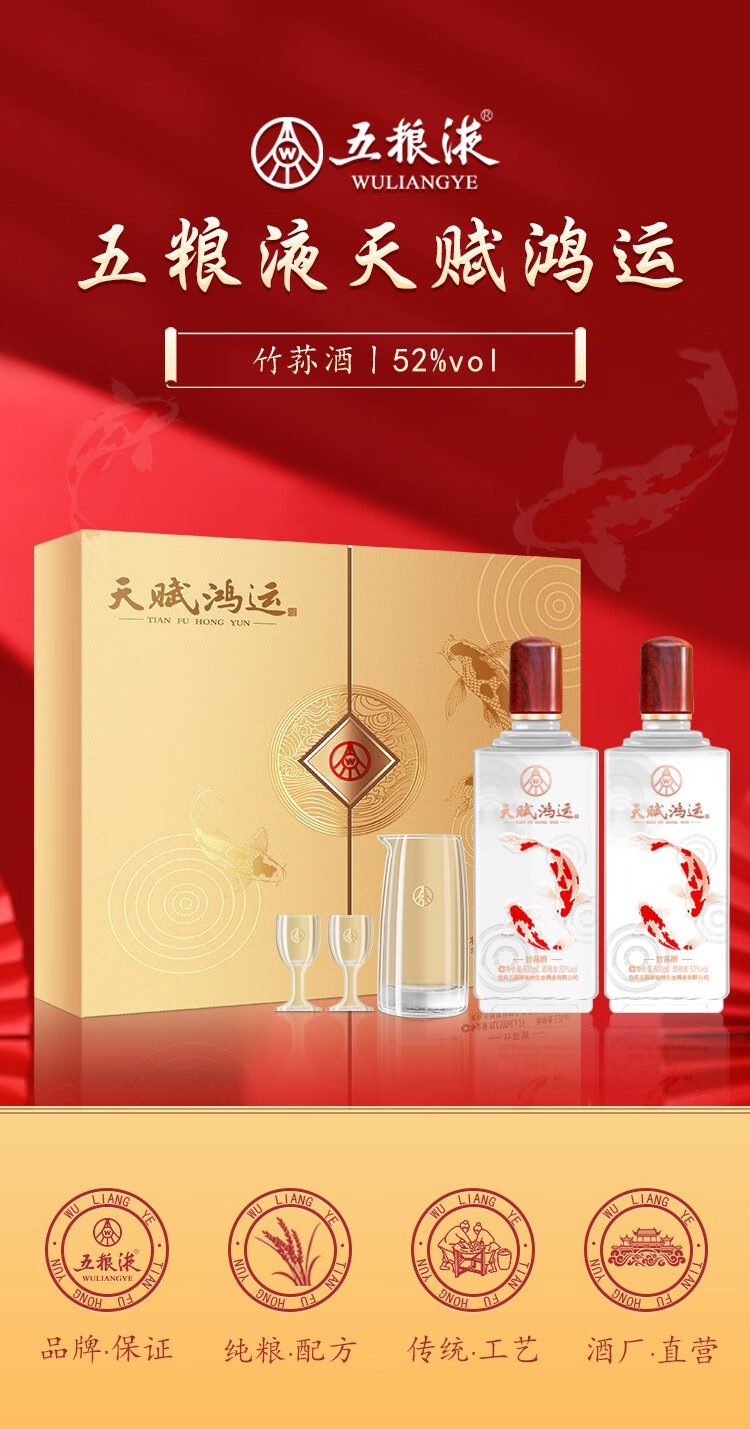五粮液生态酿酒 天赋鸿运 锦鲤礼盒 52度 优级酒水 竹荪酒 500ml*2瓶*3盒 整箱