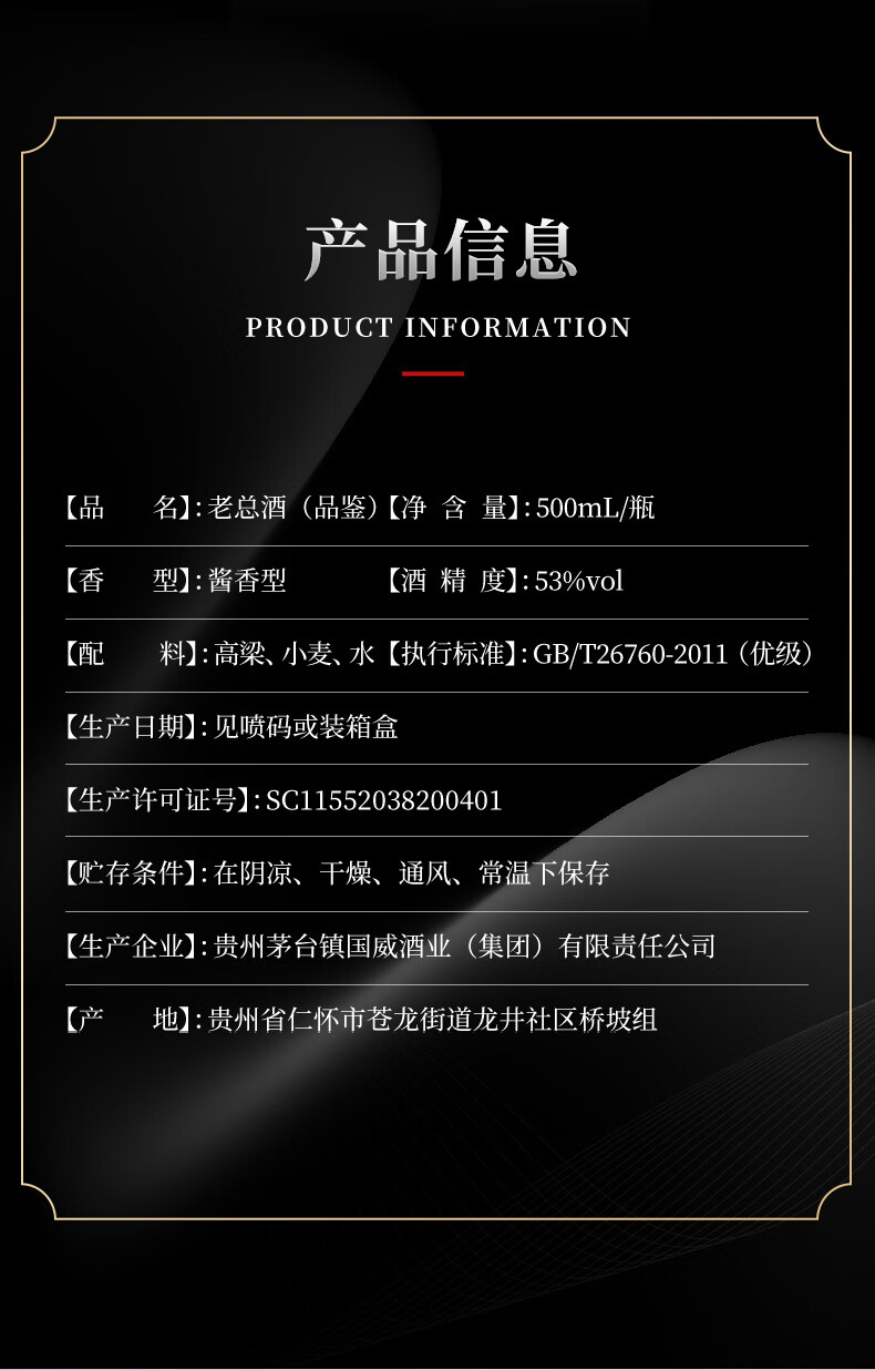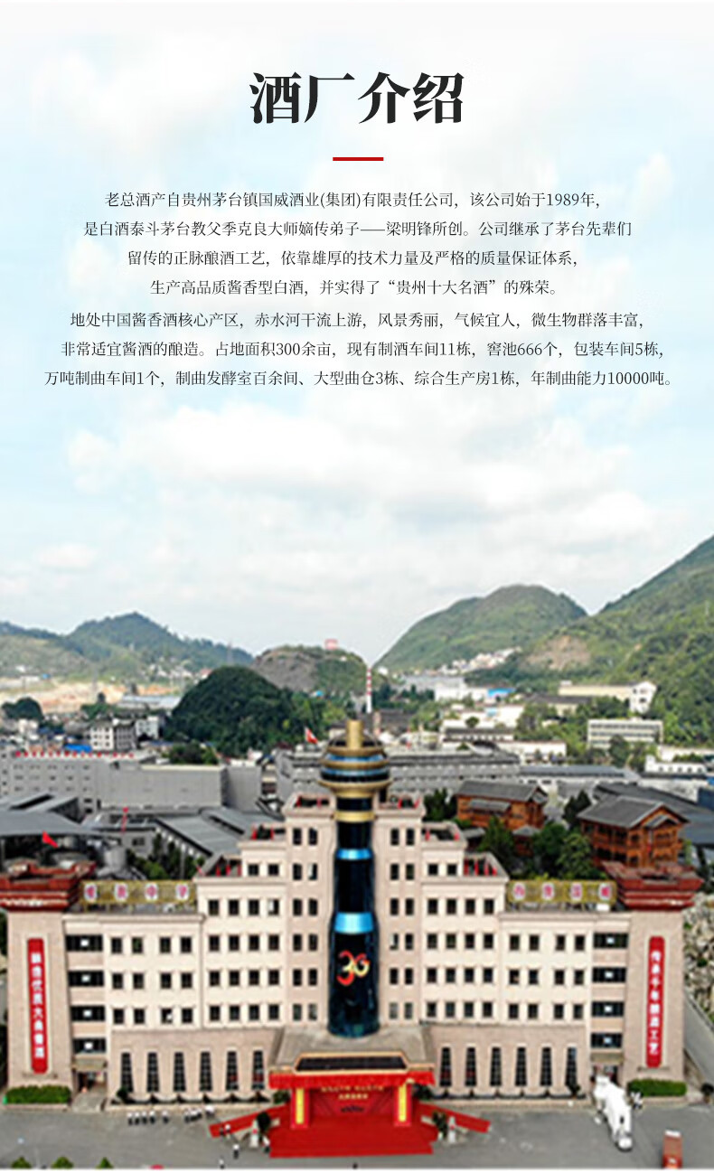 贵州茅台古镇 老总(品鉴)53度 酱香型白酒 老窖窖藏纯粮食酿造 500ml*6瓶 整箱