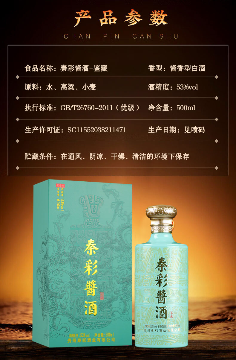 秦彩酱酒 鉴藏 53度 酱香型白酒 纯粮酿造 收藏送礼自饮 500ml*6瓶 整箱