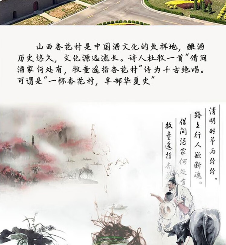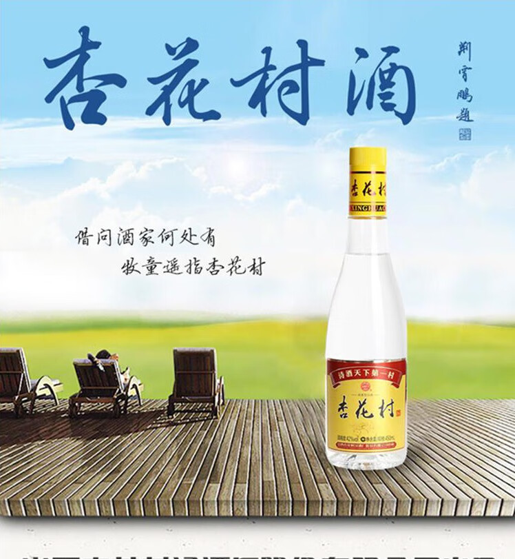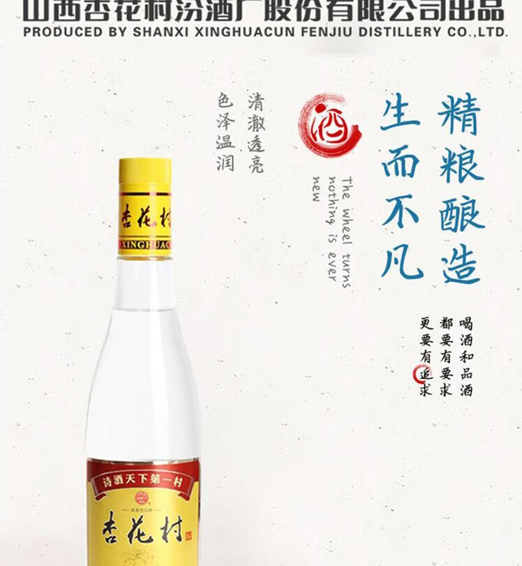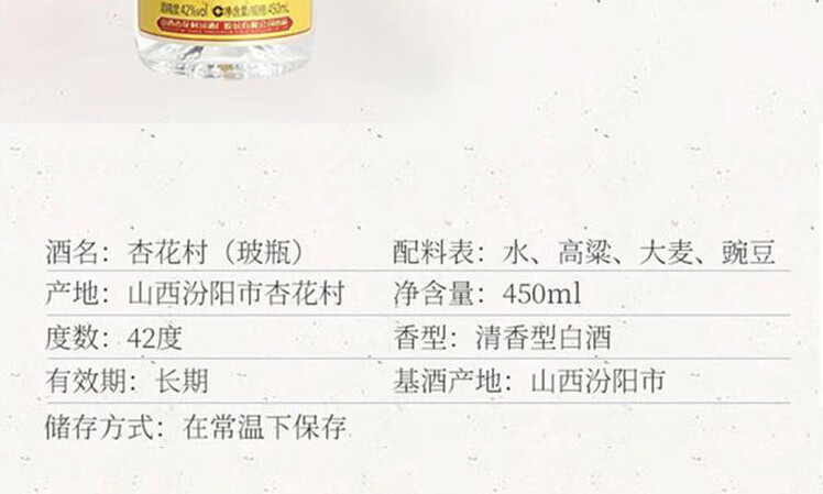汾酒 杏花村 黄盖 金标玻瓶 42度 清香型白酒 口粮酒 450mL*12瓶 整箱装