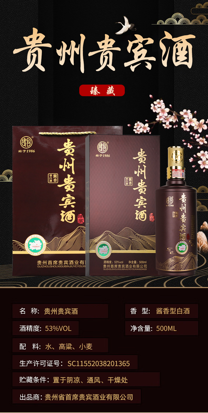 贵州贵宾酒 53度 酱香型白酒 纯粮酿造 500ml*6瓶 整箱