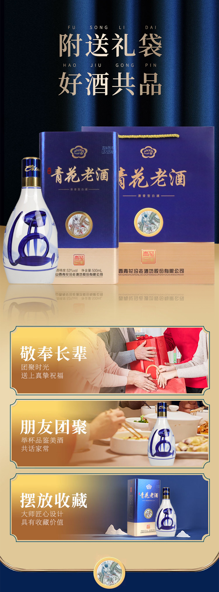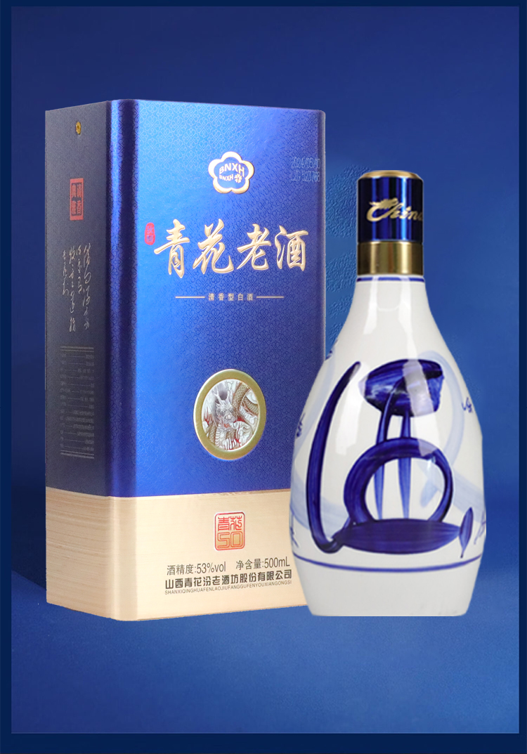 山西青花 青花老酒50 53度 清香型白酒 纯粮酿造 500ml*6瓶 整箱
