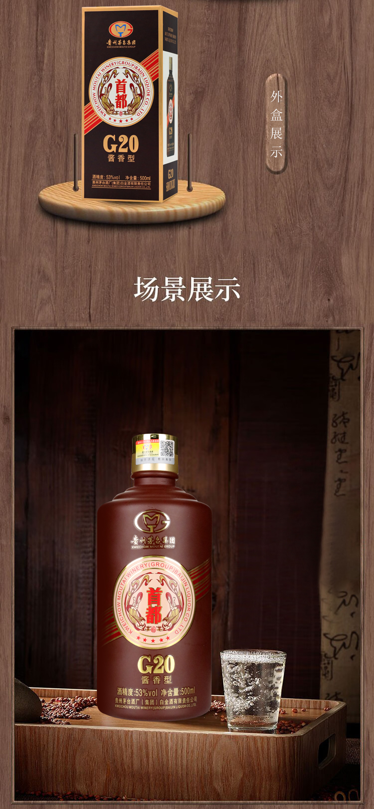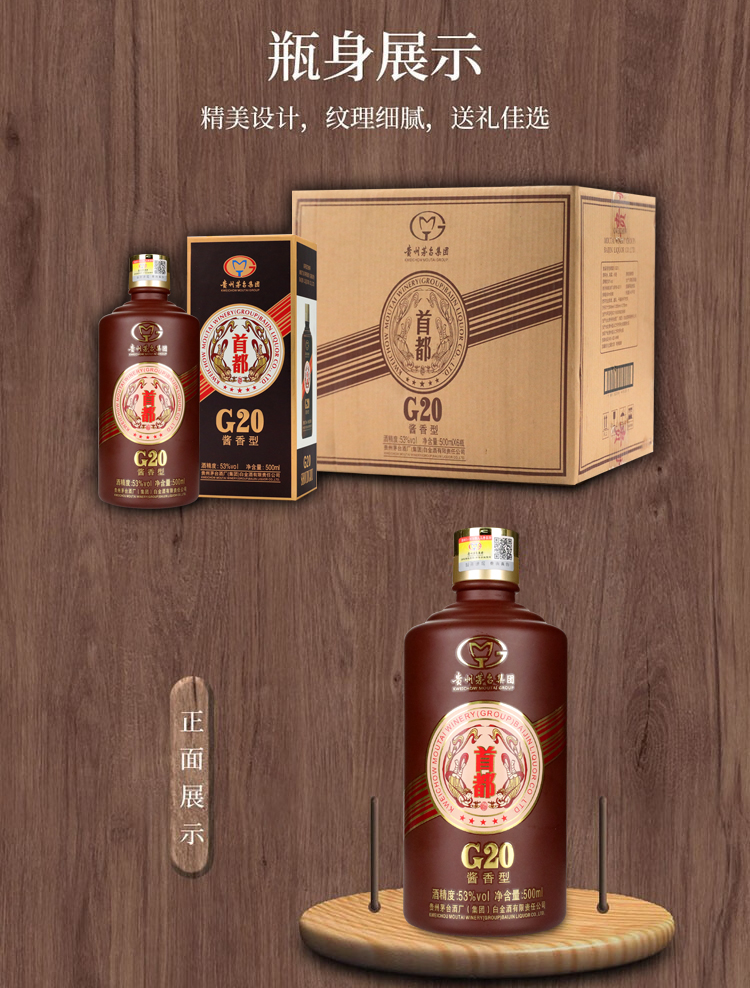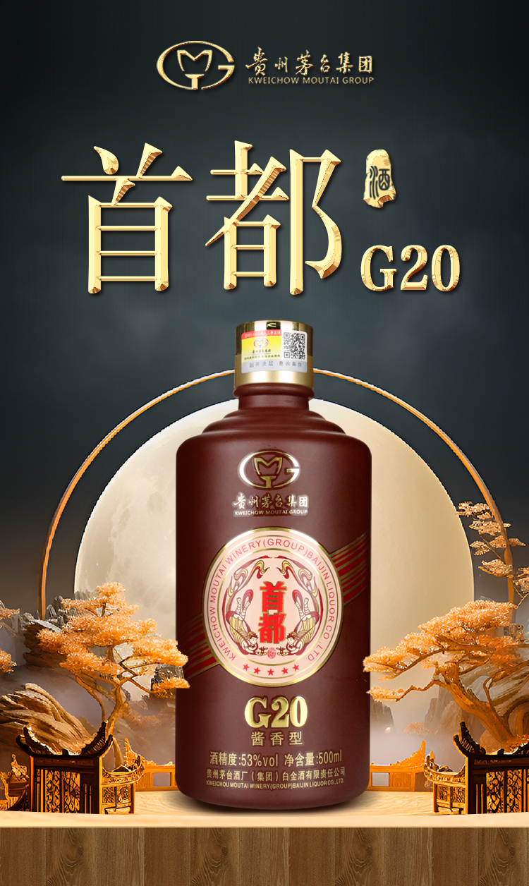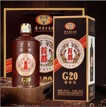 茅台集团 首都G20 2016年老酒 53度 酱香型白酒 500ml*6瓶 整箱