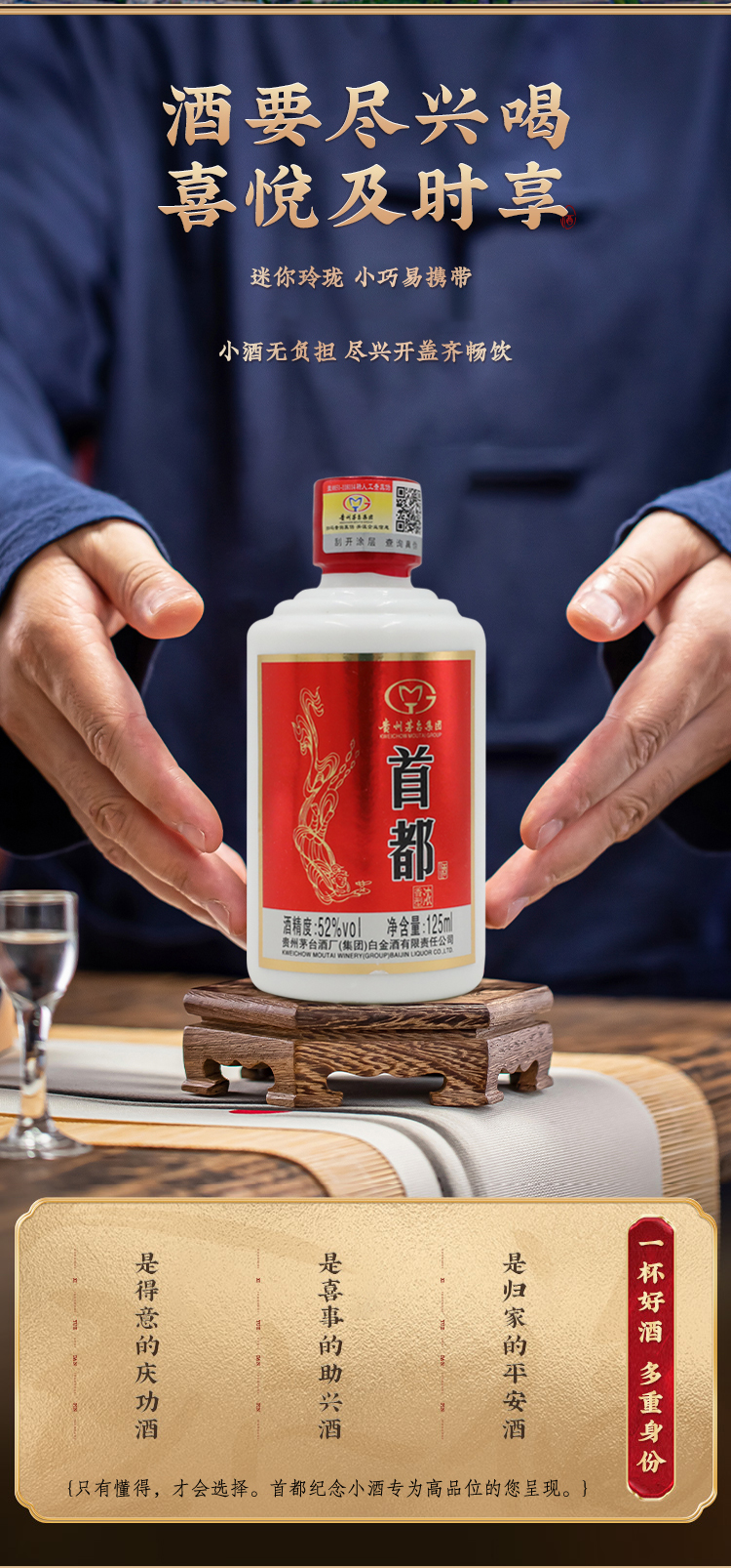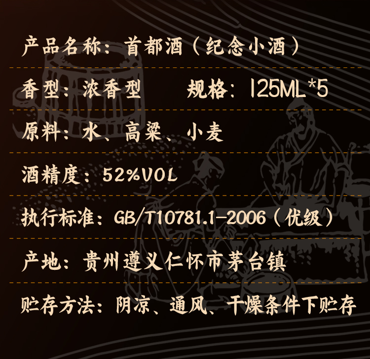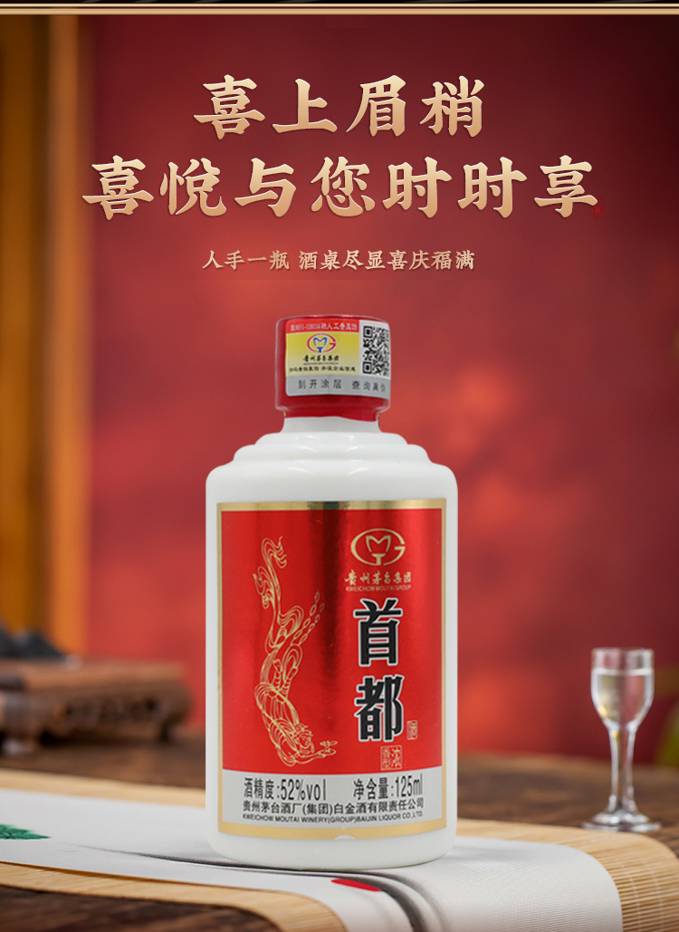 茅台集团 首都纪念小酒 52度 浓香型白酒 125ml*5瓶 整盒
